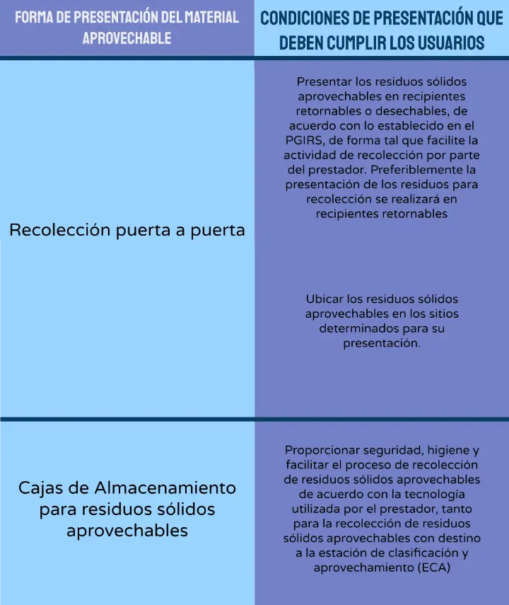 Aquí podrás observar el decreto que cumplimos diariamente por nuestros objetivos y la forma de la presentación del material aprovechable y las condiciones de presentación que deben cumplir los usuarios.